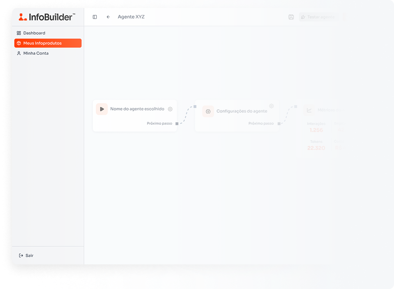 Com o InfoBuilder™ você cria agentes mentores, personagens e ferramentais com toda estrutura, lógica e inteligência focada para infoprodutos.