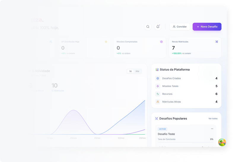 Crie e gerencie desafios personalizados dentro do seu curso. Sem limites de desafios e participantes.